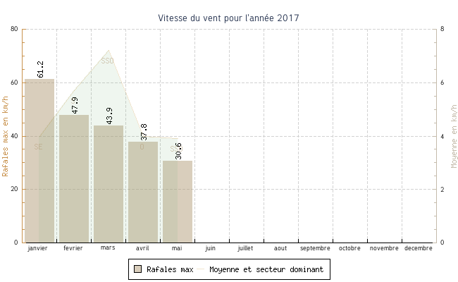 | mai | 1.7 °C | 8.0 °C | 27.2 °C | 17.7 °C | 12.6 °C | 3.9 km/h | 30.6 km/h | SSO |
